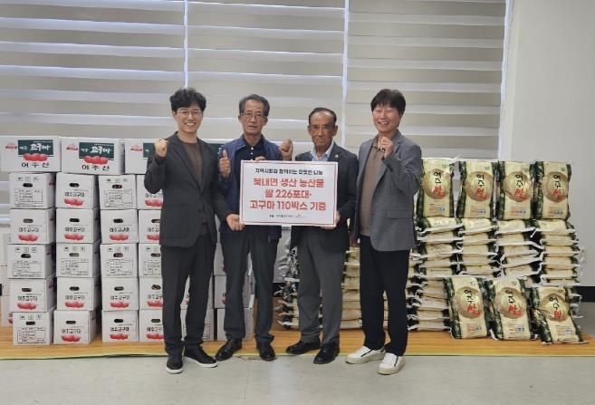 이번에 구입한 쌀과 고구마는 10월 1일 북내면행정복지센터에 전달됐으며, 지역 내 어르신을 위해 경로당에 배부될 예정이다.