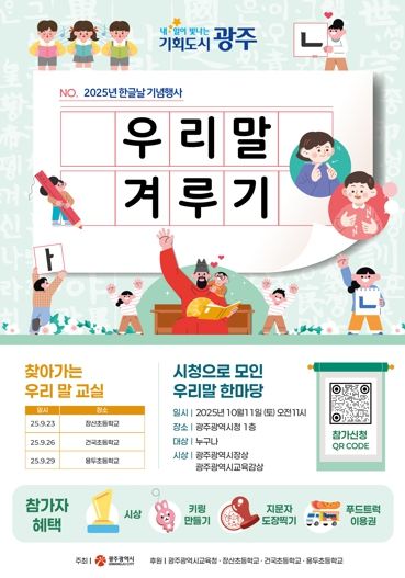 뉴한국방송뉴스통신사 김성의 기자 | 광주광역시는 한글날을 기념해 오는 11일 오전 11시 시청 시민홀에서 ‘우리말 겨루기’ 행사를 연다.