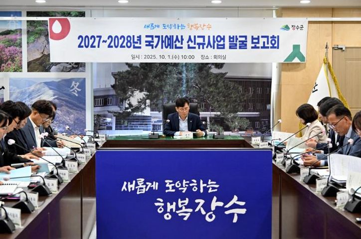 뉴한국방송뉴스통신사 김성의 기자 | 장수군은 군청 회의실에서 ‘2027~2028년 국가예산 신규사업 발굴 보고회’를 열고 미래 성장동력 확보를 위한 핵심 사업 발굴 성과를 공유했다고 10일 밝혔다.