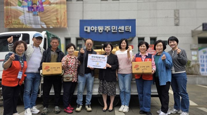 뉴한국방송뉴스통신사 신유철기자 기자 | 시흥시 대야동 통장협의회는 지난 10월 10일 대야동 주민센터에서 지역 취약계층을 위한 고구마 40상자(500kg) 전달식을 열었다. 이번 나눔은 지역 사회 돌봄의 공백을 줄이고, 따뜻한 명절 분위기를 어려운 이웃들과 나누기 위해 마련됐다.