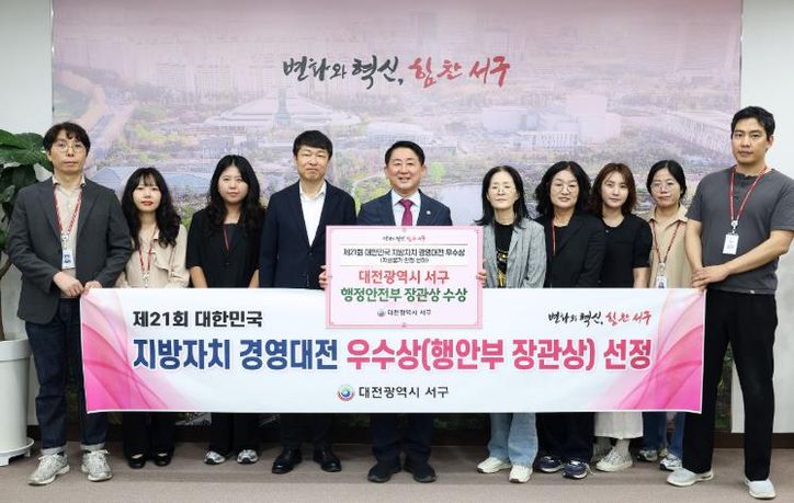 뉴한국방송뉴스통신사 신태공 기자 | 대전 서구는 제21회 대한민국 지방자치 경영대전에서 지방 물가 안정 분야 우수상(행정안전부 장관 기관 표창)을 받았다고 13일 전했다.