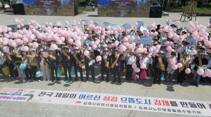뉴한국방송뉴스통신사 김성의 기자 | 김제시는 김제시어르신섬김위원회가 제27회 김제지평선축제를 맞아 지난 10일, 노인맞춤돌봄서비스 수행기관 3개소(김제노인복지센터, 김제노인종합복지관, 성암노인복지센터) 250여명의 종사자들과 함께‘어르신이 행복한 도시 김제’를 만들어가기 위한 캠페인을 진행했다고 밝혔다.