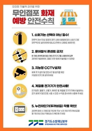 뉴한국방송뉴스통신사 신유철기자 기자 | 남양주소방서는 13일, 최근 증가하는 무인점포 화재사고를 예방하기 위해 ‘무인점포 화재예방 안전수칙’ 집중 홍보에 나섰다.