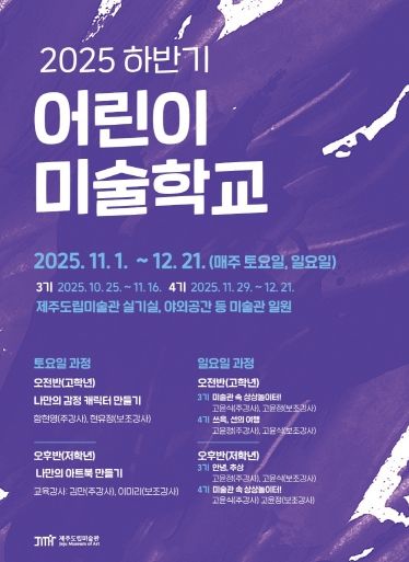 뉴한국방송뉴스통신사 신유철기자 기자 | 제주특별자치도 도립미술관(관장 이종후)은 10월 25일부터 12월 21일까지 ‘2025 어린이 미술학교’ 하반기 교육프로그램을 운영한다.