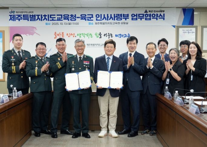 뉴한국방송뉴스통신사 신유철기자 기자 | 제주특별자치도교육청은 13일 도교육청 상황실에서 육군 인사사령부와 고등학생들의 진로 탐색 기회 확대를 위한 업무협약을 체결했다.