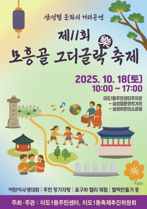뉴한국방송뉴스통신사 신유철기자 기자 | 제주시 이도1동과 이도1동축제추진위원회는 10월 18일 삼성혈 문화의 거리 일대에서 ‘제11회 모흥골 그디글락(樂)’ 축제를 개최한다.