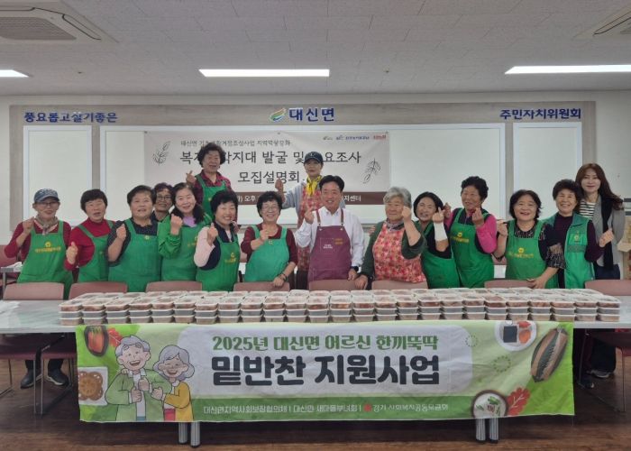 한편 대신면 지역사회보장협의체는 매주 화요일 대신면 새마을부녀회와 대신면 적십자회 두 단체와 함께 ‘어르신 한끼뚝딱 밑반찬 지원사업’을 진행하고 있으며, 정성껏 준비한 반찬과 함께 어르신들에게 따뜻한 마음을 전하며 지역사회에서 큰 호응을 얻고 있다.