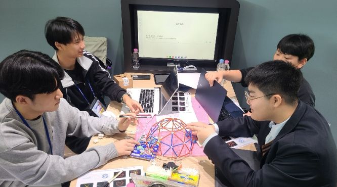 학생들은 AI에 설계 조건을 제시해 초안을 생성하고, 시뮬레이션으로 성능을 검증한 뒤 4D 프레임 부품을 이용해 실제 구조물을 제작했다.