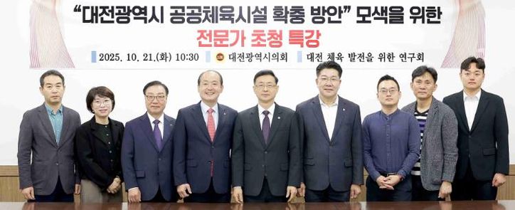 뉴한국방송뉴스통신사 신태공 기자 | 대전시의회 의원연구회인 ‘대전 체육 발전을 위한 연구회’는 21일 시의회 3층 공감실에서 '대전광역시 공공체육시설 확충 방안'을 주제로 전문가 초청 특강을 개최했다.