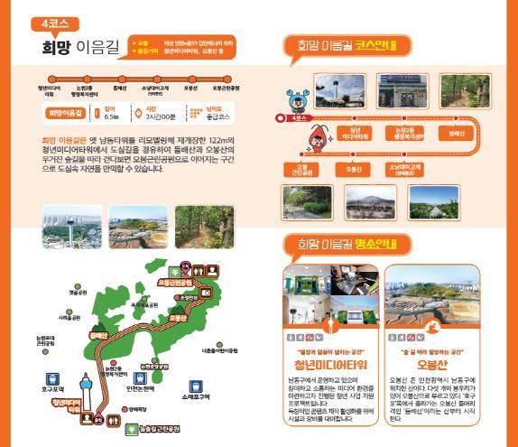 남동구 관계자는 “앞으로도 남동둘레길을 이용하는 구민들이 보다 편리하게 이용할 수 있도록 불편 사항을 지속적으로 개선해 나갈 예정”이라고 밝혔다.