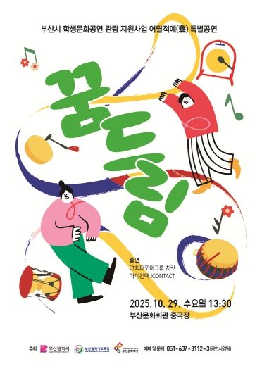 뉴한국방송뉴스통신사 신유철기자 기자 | (재)부산문화회관(대표이사 차재근)은 오는 10월 29일, 평소 공연관람 기회가 적은 부산지역 학교 밖 청소년들을 위한 특별공연 어릴적예(藝) '꿈드림' 공연을 개최한다.