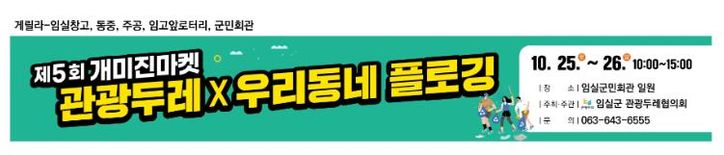 뉴한국방송뉴스통신사 김성의 기자 | 임실군 관광두레협의회가 오늘 25일부터 26일까지 2일간 임실 군민회관 일원에서 ‘2025년 개미진마켓×우리동네 플로깅’을 운영한다.