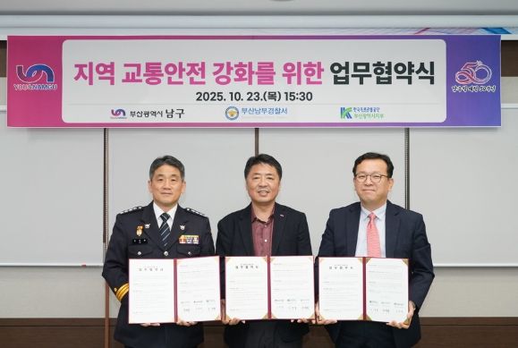 뉴한국방송뉴스통신사 신유철기자 기자 | 부산 남구는 지난 10월 23일, 부산 남부경찰서 및 도로교통공단 부산광역시지부와 함께‘지역 교통안전 강화를 위한 업무협약’을 체결했다고 밝혔다.