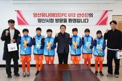 뉴한국방송뉴스통신사 신유철기자 기자 | 양산시는 지난 3일 시청 3층 상황실에서 제55회 전국소년체육대회 경상남도 대표 선발전을 앞두고 훈련에 매진 중인 ‘양산유나이티드FC U12’ 선수단을 초청해 격려 간담회를 가졌다. 이날 간담회에는 양산유나이티드FC 배익두 대표이사와 조용기 감독을 비롯해 오지훈(부산 좌산초), 박라현(가촌초), 박승우(금송초), 강준서(동산초), 유현우(황산초), 김가인(금오초) 등 팀을 대표하는 12세 이하 유망주 선수 6명이 참석했다. 이번 간담회는 지역을 대표해 구슬땀을 흘리고 있는 어린 선수들의 사기를 북돋우고, 현장의 목소리를 청취하기 위해 마련됐다. 양산유나이티드FC U12팀은 현재 다가오는 전국소년체전 경남 대표 선발전을 대비해 강도 높은 훈련을 이어가고 있다. 지난 2021년 법인화와 함께 공공스포츠클럽으로 출범한 양산유나이티드FC는 짧은 역사에도 불구하고 괄목할 만한 성과를 거두며 영남권 최고의 유소년 축구 명문으로 자리 잡았다. 주요 성과로는 ▲경남 초·중 종합체육대회 6회 연속(2020~2025) 우승 ▲2년 연속(2023~2024) 전국소년체