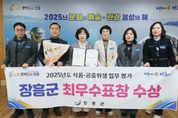 뉴한국방송뉴스통신사 신다은기자 기자 | 장흥군은 전라남도 주관 ‘2025년 식품·공중위생업무 종합평가’에서 ‘최우수기관’으로 선정됐다. 이번 수상으로 식품·공중위생분야에서 장흥군보건소 위생부서 설립 이래 최초로 최우수기관상을 수상하는 영예를 안았으며, 그 동안 업무를 내실있게 추진해 온 것으로 평가된다. ‘식품·공중위생업무 종합평가’는 전남도가 22개 시군을 대상으로 유통식품 안전성 확보, 식품위생업소 관리, 식중독 예방관리 사업, 공중위생업소 관리, 담당자 역량강화 5개 분야, 21개 정량 지표로 평가를 실시했다. 장흥군은 관내 식품제조업소 및 음식점, 공중위생업소에 대해 위생 지도점검을 강화하고, 소비자식품위생감시원의 효율적 운영을 통해 안전한 식품의 제조·유통기반 조성과 위생업소 위생수준 향상을 위해 노력해왔다. 특히, 소규모 식품제조가공업자를 위한 공유주방영업 등록을 통해 창업 부담을 줄이고 효율성을 높이는 기관 간 협업 정책 추진, 위생업소 친절서비스 개선 및 식중독 등 예방 컨설팅으로 위해사고 사전 차단 등 타 시군과 차별화된 사업 추진에 대해 높은 평가를 받았다. 장흥군 관
