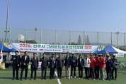 뉴한국방송뉴스통신사 신유철기자 기자 | ‘2026 진주시그라운드골프협회장배 대회’가 지난 26일 진주스포츠파크 축구장에서 7개 클럽 소속 그라운드골프 동호인 및 관계자 300여 명이 참가한 가운데 개최됐다. 진주시그라운드골프협회(회장 하종오)가 주최·주관하고 진주시와 진주시체육회가 후원한 이번 대회는 동호인 간 화합을 도모하고 어르신 체육 활성화 및 여가 증진을 위해 마련됐다. 이번 대회는 대한그라운드골프협회 경기규칙에 따라 8개 홀을 4차례 순환하며 총 타수를 합산하는 방식으로 진행됐다. 개회식에서는 그라운드골프 발전과 생활체육 활성화에 기여한 공로를 인정받아 조상규 금산클럽 회장과 조영식 남강클럽 회장이 진주시장 감사패를 받았다. 진주시그라운드골프협회 하종오 회장은 “많은 동호인들이 함께해 주셔서 감사드린다”며 “앞으로도 그라운드골프를 통해 건강하고 활기찬 생활이 이어지길 기대한다”고 말했다. 진주시 관계자는 “이번 대회를 통해 어르신들의 건강 증진과 동호인 간 친목 도모에 기여하는 뜻깊은 시간이 됐기를 바란다”고 밝혔다. 한편, 오는 4월 1일에는 진주·사천 지역 그라