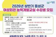 뉴한국방송뉴스통신사 권영분기자 기자 | 음성군은 2026년 상반기 여성회관 능력개발교실 수강생을 모집한다. 이번 교육은 오는 3월 6일부터 12주간 진행되며 △재봉틀반 △라인댄스 △라떼아트 △바리스타자격증반 △떡 만들기 △헤어커트 △프랑스 자수 △민화 등 주·야간 총 14강좌로 구성돼 있다. 접수는 2월 9일부터 25일까지 선착순으로 이뤄지며, 음성군민 여성·남성 누구나 신청할 수 있다. 수강 희망자는 접수 기간 내 신분증을 지참하고 음성군 여성회관(2층)을 방문해 신청하면 된다. 수강료는 12주 기준 3만원으로 수강 신청 시 현금 납부이며 재료비는 개인 부담이다. 군 관계자는 “유익한 학습 경험을 통해 군민들의 삶의 질을 높일 수 있도록 최선을 다하겠다”며 “군민들의 수요를 반영한 특별 강좌에 많은 군민이 관심을 두고 참여하길 기대한다”고 말했다. [뉴스출처 : 충청북도 음성군]