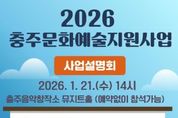 뉴한국방송뉴스통신사 권영분기자 기자 | (재)충주문화관광재단은 충주시 예술인 및 예술단체의 창작활동 기반을 마련하여 문화예술 생태계를 조성하고자 1월 19일부터‘2026 충주문화예술지원사업’공모를 진행하고 있다고 밝혔다. 공고 및 접수 기간은 2월 20일 오후 5시까지이며, 재단 홈페이지를 통해 공모요강과 신청서를 확인한 후 이메일로 접수하면 된다. 최종 선정은 전문가 심의를 거쳐 3월 중에 발표될 예정이다. 이번 공모는 ▲문학 ▲시각 ▲공연/다원 분야로 개인 및 단체부문으로 진행된다. 지원 대상은 공고일 이전 최소 6개월 이상 충주시에 주소지를 두고 있으며 충주시에서 문화예술사업을 운영할 역량을 갖춘 예술인 및 단체이다. 올해 공모에 대한 이해를 돕기 위해 1월 21일 오후 2시 충주음악창작소 뮤지트홀에서 사업설명회를 개최한다. 재단 관계자는 “지역 예술인의 창작 여건 개선과 역량 강화를 지원하고 시민들에게 수준 높은 문화예술 향유 기회를 제공하기 위해 지속적으로 노력하겠다.”라고 전했다. 한편 재단은 올해 출향예술인 예술활동 지원분야를 신설하여 타지에서 활동 중인 충주