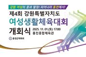 뉴한국방송뉴스통신사 양호선기자 기자 | 제4회 강원특별자치도 여성생활체육대회가 11월 1일부터 11월 2일까지 2일간 종목별 경기장에서 진행된다. 강원특별자치도체육회가 주최하고, 홍천군체육회와 강원특별자치도 회원종목단체가 주관하는 이번 도 여성생활체육대회는 강원 여성 체육인의 화합과 우정의 대축제를 만들기 위해 마련됐다. 이번 대회 종목은 게이트볼·국학기공·그라운드골프·배구·배드민턴·볼링 등 총 13개 종목이며, 선수와 대회 운영진 등 3,300여 명이 참여해 그동안 갈고닦은 기량을 펼칠 예정이다. 이번 제4회 강원특별자치도 여성생활체육대회 개최를 통해 생활체육과 건강에 대한 군민의 관심을 높이고, 체육활동을 통한 여가문화 정착과 지역경제 활성화에 기여할 것으로 기대된다. [뉴스출처 : 강원도 홍천군]