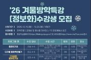 뉴한국방송뉴스통신사 양호선기자 기자 | 고성교육도서관은 12월 23일부터 31일까지 관내 초·중·고등학생을 대상으로 겨울방학 특강 수강생을 모집한다. 이번 겨울방학 특강은 1월 13일부터 1월 23일까지 8일간 운영된다. 2026년도 기준 초등학생을 대상으로 △주판 집중력 교실(초등 1~2학년) △수학 실력 키움반(초등 2~6학년) △상상 미술 실험실(초등 전 학년) 3개 강좌를 운영한다. 2026년도 기준 중·고등학생 대상으로 △문법 실력 빠짝 올리기 1개 강좌를 포함하여 총 4개 강좌를 운영한다. 고성교육도서관 누리집을 통해 신청할 수 있으며, 선착순으로 모집한다. 장지연 관장은 “작은 배움이 쌓여 큰 성장으로 이어지듯, 겨울방학 특강을 통해 의미 있는 방학을 채우길 바란다”라고 전했다. [뉴스출처 : 강원특별자치도고성교육도서관]