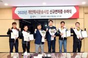 뉴한국방송뉴스통신사 양호선기자 기자 | 원주시는 2025년 개인택시운송사업 신규 면허 대상자 4명을 확정· 발표하고, 이달 27일 시청 7층 회의실에서 개인택시 운송사업 신규 면허증 수여식을 개최했다. 시는 지난 8월 18일 개인택시운송사업 신규 면허 모집 공고를 통해 13명을 접수하고, 10월 23일 확정 공고를 통해 4명을 신규 면허 대상자로 발표했다. 원강수 원주시장은 “20년이 넘는 오랜 기다림 끝에 신규 면허를 받게 된 모든 분께 존경과 축하의 말씀을 전한다”라며, “앞으로도 시민들에게 안전하고 친절 [뉴스출처 : 강원도원주시]