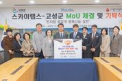 뉴한국방송뉴스통신사 양호선기자 기자 | 평화 경제 거점 도시 강원 고성군은 2025년 10월 21일, 주식회사 스카이랩스와 함께 만성질환(고혈압, 심혈관 질환 등) 의료취약계층 지원을 위한 업무협약을 체결했다. 이번 협약은 고성군과 스카이랩스가 상호 협력하여 지역민들의 건강 증진과 의료 접근성 향상을 목표로 추진됐다. 이날 협약식에는 고성군수를 비롯한 군 관계자들과 강원특별자치도 이지영 의원, 그리고 스카이랩스의 이병환 대표와 주요 관계자들이 참석했다. 고성군은 대한민국 최북단에 위치해 있어 1인 가구와 고령 인구 비중이 높고, 3차 의료기관과의 접근성이 낮은 현실을 감안하여 이번 협약이 매우 의미 있다고 밝혔다. 함명준 고성군수는 “우리 군민들의 건강관리에 늘 관심이 많으며, 스카이랩스가 개발한 ‘카트 비피’ 반지형 혈압계는 손쉽게 혈압을 측정할 수 있어 만성 심혈관질환자들의 건강관리에 큰 도움을 줄 것”이라고 전했다. 스카이랩스는 이번 협약을 통해 ‘카트 비피’ 혈압계를 고성군에 기탁하며, 이를 활용한 건강관리 지원 방안을 논의했습니다. ‘카트 비피’는 누적된 데이터를 기반으로 건강