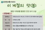 뉴한국방송뉴스통신사 양호선기자 기자 | 원주시 동부복합생활지원센터는 오는 23일부터 ‘이 계절의 맛 (봄)’ 건강 요리 교실 프로그램 참여자를 모집한다. 이번 프로그램은 봄철 식재료를 활용해 면역력과 활력을 높이는 건강 요리 실습이다. 이를 통해 지역 주민들의 건강하고 균형 잡힌 식습관 형성을 돕는다. 4월 3일부터 24일까지 매주 금요일마다 총 4회에 걸쳐 영양 교육과 요리 실습이 운영된다. 교육은 오전 10시 30분부터 한 시간 동안 비대면으로 진행된다. 모집 인원은 20명이며, 신청은 3월 23일 오전 9시부터 27일까지 원주시 통합예약플랫폼을 통해 선착순으로 접수한다. [뉴스출처 : 강원도 원주시]
