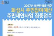 뉴한국방송뉴스통신사 신유철기자 기자 | 화성특례시는 2일부터 4월 30일까지 ‘2027년 예산 편성을 위한 주민제안사업’신청을 받는다고 2일 밝혔다. 주민제안사업은 주민의 예산 편성 과정 참여를 보장하고 주민이 원하는 현안사업을 예산에 반영해 재정 민주주의를 실현하기 위한 주민 참여예산제 일환으로 추진된다. 주민제안사업 제안은 화성특례시 거주자, 기업 재직자, 학교 재학생(청소년시설 이용자 포함)이면 누구나 참여할 수 있으며, 다수의 주민에게 혜택을 줄 수 있는 사업이거나 생활 속 안전사고 예방과 관련 있는 사업 등을 제안하면 된다. 사업 제안 유형은 총 4개 분야로, ▲시청 및 구청 사업부서 소관 사업(사업당 최대 3억 원) ▲지역 밀착형 읍면동 단위 사업(사업당 최대 5천만 원) ▲청년참여예산(사업당 최대 5천만 원) ▲청소년참여예산(5백만 원~3천만 원)이다. 특히, 청년 및 청소년참여예산 분야는 다양한 세대의 참여를 독려하기 위해 올해 신설한 분야로, 수혜자 다수가 청년·청소년이거나 청년·청소년 문제 해결을 주목적으로 하는 사업을 제안하면 된다. 주민제안사업으로 최종 선정된 사업