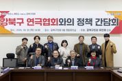 뉴한국방송뉴스통신사 신유철기자 기자 | 강북구의회 유인애 의원(번1·2동, 수유2·3동)이 지난 30일, 강북구의회 3층 의원회의실에서 강북연극협회(회장 송정바우)와 함께 지역 공연예술 발전을 위한 간담회를 개최했다. 이번 간담회에는 유인애 의원을 비롯해 이종환 서울시의회 부의장과 조윤섭 강북구의회 부의장 그리고 연극협회의 송정바우 회장, 박웅 고문 등 협회 임원 및 회원들이 참석했다. 이날 회의에서는 강북연극협회가 지역 공연예술 활성화를 위해 필요한 현장의 목소리와 정책적 건의사항을 전달하며 활발한 논의가 이어졌다. 연극협회는 먼저, 강북구의 예술단체 보조금 지원 대상에 강북연극협회를 추가해줄 것을 요청했다. 협회는 “한국예총에 포함된 10대 문화예술 분야 단체 중 연극협회가 강북구의 지원대상에서 제외된 것은 형평성에 맞지 않는다”며 고정적 지원단체로의 포함 필요성을 강조했다. 또한 연습공간 부족 문제도 건의했다. 협회는 “과거 수유시장 인근에 연극협회 전용 연습실이 있었으나 재정난으로 사라졌다”며 “유휴공간이나 빈집을 활용해 지역 예술인을 위한 창작공간, 커뮤니티 플랫폼을 조성해주길 바란다”고 요청했다. 이