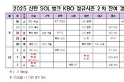 뉴한국방송뉴스통신사 신유철기자 기자 | KBO는 26일(금) 2025 신한 SOL뱅크 KBO 정규시즌 2차 잔여 경기 일정을 확정했다. 편성된 경기는 1차 잔여 경기 일정에서 우천 취소된 후 편성되지 않았던 7경기이며, 10월 3일(금)까지 편성됐다. 경기가 우천 등으로 취소될 경우 발표된 일정의 예비일로 우선 편성되며, 다음 날 동일 대진일 경우 더블헤더로 편성된다. 예비일이 없을 경우 추후 편성된다. 경기 개시시간은 평일 18시 30분, 토요일 17시, 일요일 14시이다. 또한 10월 3일(금) 경기는 해당 구단의 전날 경기 후 이동을 고려하여 17시에 편성한다. 한편, 우천 등으로 연기되는 경기가 포스트시즌 참가팀 이외의 팀간 경기이거나 포스트시즌 진출팀이라도 해당 시리즈와 관계없는 대진일 경우에는 정규시즌 최종일과 와일드카드 결정전 개막일 사이의 이동일 또는 포스트시즌 기간 중에도 경기를 거행할 수 있으며 와일드카드 결정전 진출 구단의 정규시즌 마지막 경기와 와일드카드 결정전 개최일 사이 최소 하루의 이동일을 둘 예정이다. 또한, 정규시즌 제1,5위 구단이 두 팀일 경우에는 KBO 리그 규정