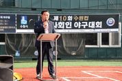 뉴한국방송뉴스통신사 신유철기자 기자 | 수원특례시의회는 10월 19일 황구지천야구장에서 열린 ‘제10회 수원컵 전국 사회인 야구대회 개회식’에 참석해 선수들을 격려했다. 이번 대회는 경기일보가 주최하고 수원시야구소프트볼협회가 주관했으며, 전국 사회인 44개 팀이 참가해 뜨거운 열정 속에 경기를 펼쳤다. 이날 행사에는 이재식 의장, 김정렬 부의장을 비롯한 오세철 예산결산특별위원장, 김동은 의원이 함께해 선수단을 응원하며, 전국 각지에서 모인 야구 동호인들과 교류의 시간을 가졌다. 이재식 의장은 축사에서 “직장과 가정을 오가며 바쁜 일상 속에서도 야구에 대한 열정으로 최선을 다하는 선수 여러분께 진심 어린 박수를 보낸다”며 “이번 대회가 지역과 세대를 넘어 우정을 나누는 축제가 되길 바란다.”고 말했다. [뉴스출처 : 수원특례시의회]
