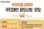 뉴한국방송뉴스통신사 신유철기자 기자 | 시흥시는 주민이 주도하는 마을공동체 활성화를 위해 ‘2026년 시흥시 희망마을공동체 주민제안 공모사업’을 추진하고, 시민들의 이해를 돕기 위한 권역별 사전설명회를 다음 달 남부권과 중ㆍ북부권으로 나눠서 개최한다. 관련 사업은 이웃 간 소통과 협력을 바탕으로 주민 스스로 지역문제를 해결하고, 지속 가능한 마을공동체를 형성할 수 있도록 지원하는 사업이다. 시는 주민들의 자발적인 참여와 창의적인 아이디어를 통해 다양한 마을공동체 활동이 발굴될 것으로 기대하고 있다. 공모 신청 기간은 2월 11일부터 13일까지이며, 공모사업에 대한 이해를 높이기 위해 마련된 권역별 사전설명회는 남부권과 중부·북부권으로 나눠 진행된다. 남부권 설명회는 2월 3일 오후 3시 정왕동평생학습관 303호에서 열리며, 중부ㆍ북부권 설명회는 2월 6일 오전 10시 30분 시청 별관 4층 글로벌3에서 개최된다. 사전설명회에서는 공모사업의 추진 방향과 지원 내용, 신청 자격, 사업계획서 작성 방법 등을 안내하고, 질의응답을 통해 참여자들의 궁금증을 해소할 예정이다. 마을공동체 활동에 관심 있는 시민이라면 누구나