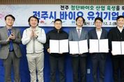 뉴한국방송뉴스통신사 김성의 기자 | 첨단바이오 분야 기술력을 보유한 국내 기업들이 전주에 둥지를 틀면서 바이오산업을 새로운 성장동력으로 육성해 온 전주시의 계획에 힘이 실리게 됐다. 전주시는 2일 전주시청 3층 소회의실에서 파마로보틱스와 뉴아인, 하이퍼틱스 등 첨단바이오 분야 기술력을 보유한 3개 기업과 공동 성장을 위한 업무협약을 체결했다. 이날 협약식에는 우범기 전주시장과 세 기업의 대표 등 관계자 8명이 참석했으며, 이들은 기업 애로 해소와 산업 생태계 확장을 위한 상생 협력에 나서기로 뜻을 모았다. 이 자리에서 시는 현재 추진 중인 연구개발 인프라 조성 계획과 바이오산업 육성 방향을 설명하고, 기업들로부터 이전 계획과 기술개발 현황, 필요한 지원 사항 등을 청취했다. 특히 이번에 협약을 맺은 기업들은 모두 첨단 의료기기와 전자약 분야에서 경쟁력을 인정받은 기술 기반 기업들로 지역 바이오산업 성장을 위한 동력이 될 것으로 기대를 모은다. 구체적으로 파마로보틱스는 AI 기반 주사제 자동조제 로봇을 개발하며 TIPS와 초격차 1000+ 등에 선정된 성장기업으로, 지난 10월 본사를 전