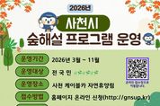 뉴한국방송뉴스통신사 신유철기자 기자 | 사천시는 관내 유아숲체험원 5개소(수양공원, 초전공원, 망산공원, 월성공원, 자연휴양림)와 사천 케이블카 자연휴양림에서 운영하는 2026년 산림교육(유아숲·숲해설) 프로그램 참여자를 모집한다고 22일 밝혔다. 이번 프로그램은 4월 1일부터 11월 22일까지 운영되며, 사천시는 2025년 월성공원 유아숲체험원을 신규 조성함에 따라 올해 총 5개소의 유아숲체험원에서 다양한 유아숲체험 프로그램을 운영할 계획이다. 또한 사천 케이블카 자연휴양림에서는 올해 처음으로 숲해설 프로그램을 운영해 휴양림 방문객들에게 숲의 생태와 자연환경에 대한 이해를 높이는 기회를 제공할 예정이다. 프로그램은 유아숲지도사 2명과 숲해설가 1명이 진행하며, 유아숲체험원에서는 어린이집·유치원 유아를 대상으로, 사천 케이블카 자연휴양림에서는 시민과 방문객을 대상으로 체험형 산림교육을 실시한다. 프로그램 신청은 3월 23일부터 경남숲교육협회 홈페이지에서 가능하며, 자세한 사항은 경남숲교육협회 사무국으로 문의하면 된다. 시 관계자는 “관내의 유아들과 시민들이 숲에서 자연을 체험하며 건강하