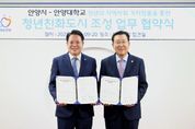 뉴한국방송뉴스통신사 신유철기자 기자 | 안양시와 안양대학교가 청년친화도시 조성을 비롯한 다양한 청년정책 추진을 위해 협력에 나섰다. 시는 12일 오전 9시 20분 안양시청 3층 상황실에서 안양대학교와 ‘청년과 함께하는 지역사회 가치창출 상호협력을 위한 업무협약(MOU)’을 체결했다. 이번 협약에 따라 양 기관은 지역사회의 청년 현안 해결 방안을 함께 모색하고, 청년친화도시 조성을 위한 각종 청년정책 사업을 추진하는 과정에서 긴밀히 협력하기로 했다. 특히 ▲안양시 청년사업(청년친화도시 조성・청년네트워크 등) 참여 및 지원 ▲안양대학교 주관 지역사회 가치창출 프로그램 행정적 지원 및 협력 ▲청년정책 활성화를 위한 지원 및 대외홍보 등에 대해 적극 협력하기로 했다. 시는 이번 협약을 통해 청년들이 지역사회에서 안정적으로 자립하고 도전할 수 있는 기반을 마련하고, 청년친화도시 조성을 실현해 나간다는 방침이다. 이날 협약식에는 최대호 안양시장을 비롯한 관계 공무원, 장광수 안양대학교 총장, 안양대 관계자 등이 참석했다. 최대호 안양시장은 “청년이 행복해야 도시가 발전할 수 있다”며