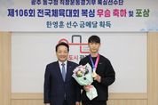 뉴한국방송뉴스통신사 김성의 기자 | 광주 동구는 직장운동경기부 동구복싱단 소속 한영훈 선수가 최근 부산 벡스코에서 열린 ‘제106회 전국체육대회’에 출전해 금메달을 수상했다고 밝혔다. 동구복싱단의 간판선수인 한영훈 선수는 이번 대회 64㎏급에 출전해 뛰어난 기량으로 최종 1위에 오르며 금메달을 목에 걸었다. 한영훈 선수는 제103회부터 105회까지 전국체육대회에서 연속 우승을 차지한 데 이어 이번 제106회 대회에서도 금메달을 획득하며 4연속 빛나는 성과를 거뒀다. 한 선수는 굵직한 대회에서 여러 차례 입상하며 국내 복싱계의 유망주로 확고히 자리매김하고 있다. 또한 이날 동구복싱단의 창단 멤버였던 이행석 선수가 지난해 국군체육부대 입대 후 올해 9월 제대, 광주광역시복싱협회 소속으로 이번 전국체전에 출전해 56㎏급에서 동메달을 얻었다. 동구복싱단은 2020년에 재창단된 후 출범 1년 만에 단일 전국대회 전원 메달 획득이라는 성적을 거뒀다. 2022년부터는 전국체전에 출전해 매년 메달을 획득, 올해까지 금메달 3개, 동메달 2개를 확보했다. 7월 제7회 경찰청장