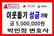뉴한국방송뉴스통신사 신유철기자 기자 | 박민정 사천시 고문변호사는 지난 15일 사천시청을 방문해 관내 공동생활가정 까치둥지(200만 원), 모모네(150만 원), 호산나 그룹홈(150만 원)에 성금 500만 원을 기탁했다. 박민정 변호사는 법률 전문가로서 아동의 권익 보호에 적극적으로 힘써왔으며, 2022년부터는 관내 어려운 이웃들을 위해 성금과 물품을 꾸준히 기탁하는 등 지역사회에 대한 사랑을 실천하고 있다. 박민정 변호사는 “이번 기탁이 관내 공동생활가정의 아동들에게 도움이 됐으면 좋겠다.”고 말했다. 기탁한 성금은 경남사회복지공동모금회를 통해 공동생활가정에 지정 기탁되어 사용될 예정이다. [뉴스출처 : 경상남도 사천시]