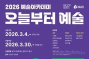 뉴한국방송뉴스통신사 신유철기자 기자 | (재)광주시문화재단은 광주시민의 문화향유 기회 확대와 예술 감수성 향상을 위해 2026년 예술아카데미 '오늘부터 예술' 수강생을 모집한다. 2026 예술아카데미는 성인 · 어린이 · 시니어 등 다양한 연령층의 수요를 반영 전통예술과 생활예술 디지털 창작을 아우르는 프로그램으로 구성했다. 특히 어린이 강좌는 가족 단위 참여 확대를 위해 ‘따로, 또 같이’ 운영 방식을 강화하여, 아이와 보호자가 함께 방문하여 각자 다른 공간에서 개별 수업을 수강할 수 있도록 운영한다.(※ 보호자 강좌는 수강료 없이 무료로 운영) 성인 강좌는 △수묵화(동양을 담아내는 수묵화) △성악(천상의 목소리, 성악) △궁중무용(전통의 아름다움 궁중무용) △노래교실(함께 부르는 노래교실) △스윙댄스(가볍게 한 스탭, 스윙댄스) △AI(AI 아트워크) 등으로 운영될 예정이다. 어린이 강좌는 △어린이 코딩(우리는 코딩예술가) △창의미술(미술로 마음껏) △명화 드로잉(작은 화가의 명화드로잉) △비트메이커 등으로 운영될 예정이다. 광주시문화재단 오세영 대표는 “예술아카데미 '오늘부터 예술