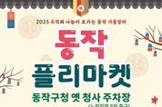 뉴한국방송뉴스통신사 신유철기자 기자 | 동작구가 오는 11월 1일 오전 10시부터 오후 5시까지 구청 옛 청사 주차장(노량진역 5번 출구)에서 ‘2025 추억과 나눔이 오가는 동작 가을장터’를 연다고 밝혔다. 이번 행사는 주민과 단체가 직접 참여하는 ‘플리마켓’과 김장철 맞이 ‘직거래장터’를 한자리에서 즐길 수 있도록 기획됐다. 먼저 플리마켓은 약 30개 부스에서 의류, 도서, 소품 등 다양한 중고 물품을 판매하며 일상 속 자원순환 문화를 실천하는 장으로 마련된다. 직거래장터에서는 자매결연 도시 등에서 들여온 김장철 필수 품목(배추, 무, 고춧가루 등)과 지역특산물이 시중가보다 최대 33% 저렴하게 판매된다. ▲축산물 타임세일(11시·13시·15시) ▲선착순 증정품 지급 ▲당일 배달서비스(박스 단위, 관내 한정) ▲칼갈이 부스(인당 2개, 개당 100원) 등 다양한 이벤트도 진행된다. 아울러 주민들이 즐길 수 있는 ‘체험 프로그램(한지 무드등·편백 향낭 만들기 등)’과 구청 직원이 참여하는 ‘사랑 나눔 바자회’도 운영된다. 바자회 수익금은 동작복지재단 등에 후원금으로 활용될 예정이다.