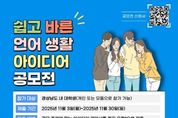 뉴한국방송뉴스통신사 신유철기자 기자 | 경상국립대학교(GNU·총장 권진회) 국어문화원(원장 정영훈 국어국문학과 교수)은 ‘경남 우리말 가꿈이 활동 지원 사업’의 일환으로 ‘쉽고 바른 언어생활 아이디어 공모전’을 개최한다. ‘경남 우리말 가꿈이 활동 지원 사업’은 우리말과 우리글을 바르게 사용하도록 알리는 언어문화 개선 운동으로, 경상국립대학교 국어문화원에서는 10년째 이 사업을 이어 오고 있다. 이번 공모전은, 경상남도 내 대학생을 대상으로 올바른 언어문화 확산에 기여할 수 있는 실용적·창의적인 아이디어를 발굴하고자 마련했다. 공모 주제는 ▲쉽고 바른 공공언어 사용 확산 방안 ▲공공기관 언어 개선 방안 ▲세대 간 원활한 소통을 위한 방안 등으로, 일상과 공공 영역에서 누구나 이해하기 쉬운 언어환경을 조성할 다양한 제안을 제출하면 된다. 제출 기간은 11월 3일부터 30일까지이다. 참가 희망자는 공모 주제에 맞는 아이디어 제안서를 작성해 전자우편(ckc@gnu.ac.kr)으로 제출하면 된다. 자세한 내용은 경상국립대학교 국어문화원 누리집에서 확인할 수 있다. 선정 결과는 12월 12일에 국어문화원 누리집에서 발표
