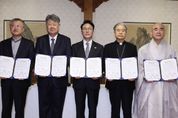 뉴한국방송뉴스통신사 신유철기자 기자 | 김민석 국무총리는 11월 24일 오전 한국교회총연합 대표회장 김종혁 목사, 한국천주교주교회의 의장 이용훈 주교, 원불교 교정원장 나상호 교무, 대한불교조계종 총무부장 성웅스님과 만나, 정부와 종교계 간 “상생협력 원탁회의 구성을 위한 협약” 및 “생명존중 및 자살예방을 위한 협약”을 체결했다, 이번 협약은 사회적 난제를 다루는데 정책적 접근만으로는 한계가 있으며, 국민의 마음과 삶까지 살피기 위해 국민 곁에서 마음을 보듬어온 종교계의 지혜가 필요하다는 인식 아래 마련됐다. 특히, 국민의 생명과 안전을 지키기 위해 자살률을 낮추는 데 정부와 종교계의 협력이 필요하다는 공감대를 바탕으로, 생명존중 및 자살예방을 위한 효과적인 협력사업을 추진하기 위해 체결됐다. 이날 협약에 따라 정부와 종교계는 우리나라의 주요한 사회 문제에 대해 함께 논의하고 합리적인 해결책을 모색하기 위해 협력하기로 했으며, 지속가능성을 확보하기 위해 현안별로 국무총리가 주재하는 원탁회의를 정례적으로 운영하기로 했다. 첫 번째 주제로 생명존중 및 자살예방 분야 협력방안을 논의했으며, 정부와 종