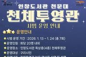 뉴한국방송뉴스통신사 신유철기자 기자 | 구리시는 오는 1월 13일부터 24일까지 인창도서관 옥상에 설치된 천체투영관의 시범운영을 실시한다고 밝혔다. 인창도서관은 2025년 1월 실체 천문 관측이 가능한 천문대를 개관해 운영해 왔으나, 눈비 등 기상 여건으로 관측이 어려운 한계를 보완하기 위해 천체투영관을 추가로 조성했다. 천체투영관은 지난해 8월 착공해 약 5개월간의 공사를 거쳐 12월 준공됐으며, 정식 개관에 앞서 시설과 프로그램의 완성도를 점검하고 이용자 의견을 수렴하기 위해 이번 시범운영을 진행한다. 인창도서관 천문대에는 돔형 관측실과 함께 250mm 굴절망원경과 태양망원경이 설치돼 있으며, 이번에 새롭게 조성된 천체투영관은 약 84㎡ 규모로 지름 7m의 경사식 반구형 돔 스크린과 최대 6K 해상도의 디지털 천체 투영기를 갖추고 있어 선명한 화질로 천문과학 영상과 별자리 관람이 가능하다. 또한 천문대와 연계 운영을 통해 천체 관측 시 별자리 이해를 돕고, 도심에서는 보기 어려운 은하수 관람 체험도 제공할 예정이다. 시범운영 프로그램은 기간 중 총 7회차로 운영되며, 사전 신청자 중
