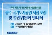 뉴한국방송뉴스통신사 김성의 기자 | 광주시가 중앙근린공원의 ‘제1호 국가도시공원’ 지정을 목표로 본격적인 행보에 나섰다. 광주광역시는 서구, 양부남 국회의원실과 공동으로 오는 30일 오후 2시30분 서구문화센터 대강당에서 ‘광주 국가도시공원 추진위원회 발대식’과 함께 ‘국가도시공원 지정 포럼’을 개최한다. 이날 발대식에서는 ‘광주 국가도시공원 추진위원회’ 출범을 공식 선언하고, 중앙근린공원의 국가도시공원 지정을 위한 시민 주도의 공감 확산과 사회적 붐 조성을 위한 역할 및 방향을 공유할 예정이다. 추진위원회는 위원장에 윤풍식 ㈜국민 회장을 비롯해 부위원장단, 자문위원, 추진위원 등 총 750명으로 구성됐다. 부위원장단에는 해당 지역 주민자치회장, 도시공원 위원, 지역 교수 등 전문가가 참여하며, 자문위원으로 강기정 광주시장, 김이강 서구청장, 양부남 국회의원이 함께 한다. 추진위원회는 행정 중심의 정책 추진 기구가 아니라 중앙근린공원의 생태·역사·문화적 가치를 널리 알리고, 중앙근린공원의 국가도시공원 지정을 향한 공감대를 확산하는 시민 서포터즈로서 활동하게 된다. 중앙근린공원은 서구 금