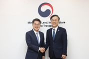 뉴한국방송뉴스통신사 신유철기자 기자 | 김동연 경기도지사가 김윤덕 국토교통부 장관을 만나 ①서울-양평 고속도로 원안 조속 추진 ②수도권 철도망 구축 ③주한미군 반환공여구역 개발 활성화 지원 ④1기 신도시 정비사업 신속추진 지원 등 4대 현안에 대한 협조를 요청했다. 김 장관은 “반드시 살펴보겠다”고 화답했다. 오늘 만남은 서울 국토발전전시관에서 약 40분 동안 이뤄졌다. 김 지사와 김 장관은 시종 화기애애한 분위기 속에 서로의 발언을 진지하게 경청하면서 깊이 있는 대화를 나눴다. 서울~양평 고속도로 원안 추진 사업은 2022년 3월 국토부가 타당성조사 용역 착수 이후 3년 이상 중단된 상태이고 지역 주민들은 여전히 교통정체로 인한 큰 불편을 겪고 있으며, 경제적 손실도 가중되고 있다. 이에 김 지사는 “서울~양평 고속도로 원안대로 신속하게 사업을 재추진해달라”고 했고, 김 장관도 윤석열 정부에서 하루 아침에 원안을 변경한 것은 “있을 수 없는 일”이란 입장을 보였다. 김 지사와 김 장관은 “빠른 시일내에 정상화 해야 한다”는 데 입장을 같이했다. 김동연 지사는 도에서 신청한 사업이 국가·광역 철도망에 최대한 반