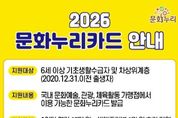 뉴한국방송뉴스통신사 신유철기자 기자 | 정부 정책에 따라 2026년부터 통합문화이용권(문화누리카드)과 청년문화예술패스 제도가 개편된다. 이에 따라 양주시는 개편 기준에 맞춰 지역대상자를 대상으로 해당 사업을 확대 시행한다고 밝혔다. 통합문화이용권(문화누리카드)은 6세 이상 기초생활수급자와 차상위계층을 대상으로 문화·여행·체육 활동을 지원하는 사업으로, 2026년에는 지원 인원이 16,386명으로 전년 대비 1,687명 증가한다. 또한 1인당 지원 금액도 기존 14만 원에서 15만 원으로 1만 원 인상된다. 특히 청소년(13~18세)과 생애전환기(60~64세) 대상자는 1만 원이 추가 지원돼 총 16만 원을 지원받게 된다. 청년층의 문화 향유 기회를 넓히기 위한 청년문화예술패스도 지원 대상이 확대된다. 2026년 지원 인원은 1,645명으로 전년 대비 727명 증가하며, 지원 연령 역시 기존 19세에서 19~20세로 확대된다. 통합문화이용권(문화누리카드)은 2월 2일부터 누리집 또는 각 읍면동 행정복지센터를 방문해 신청 가능하며, 자세한 사항은 문화누리카드 고객지원센터로 문의하면 된다.