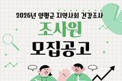 뉴한국방송뉴스통신사 신유철기자 기자 | 양평군은 질병관리청 및 양평군보건소와 공동으로 추진하는 ‘2026년 지역사회 건강조사’에 참여할 조사원 6명을 모집한다고 밝혔다. 지역사회 건강조사는 지역 주민의 건강 수준과 생활 습관, 만성질환 현황 등을 파악해 지역 특성에 맞는 보건 정책 수립의 기초 자료로 활용하기 위해 매년 실시되는 국가승인통계다. 이번 조사는 5월 16일부터 7월 31일까지 약 2개월 반 동안 진행되며, 조사 진행 상황에 따라 종료일은 변경될 수 있다. 모집 분야는 ‘2026년 지역사회 건강조사 조사원’으로, 근무 지역은 양평군 관내이며 모집 인원은 총 6명이다. 선발된 조사원은 조사 수행에 앞서 표본지점 확인을 위한 사전 조사를 실시하고, 조사 대상 가구로 선정된 표본가구를 직접 방문해 19세 이상 성인을 대상으로 스마트 기기(태블릿 PC)를 활용한 1대1 면접 조사를 수행하게 된다. 전형은 1차 서류 전형과 2차 면접 전형으로 진행된다. 군은 서류 전형에서 응시자의 자격 및 경력의 적합 여부를 심사하며, 1차 합격자를 대상으로 면접 전형을 실시한다. 원서 접수 기간은 3월 5일부터