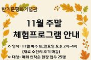 뉴한국방송뉴스통신사 권영분기자 기자 | 음성군 제8대 유엔사무총장 반기문 평화기념관에서는 관람객을 위해 11월 주말 무료 체험 프로그램을 운영한다. 해당 프로그램은 11월 1일부터 30일까지 매주 토·일요일(오후 2시~4시, 재료 소진 시 조기 마감)에 진행된다. 매회 선착순 25명을 대상으로 당일 오후 2시 현장에서 접수하며, 누구나 무료로 참여할 수 있다. 토요일에는 그림이 인쇄된 냅킨을 활용해 손거울 표면을 꾸며보는 체험인 ‘냅킨 손거울 만들기’ 프로그램을 진행한다. 일요일에는 바느질 없이 손으로 끈을 매듭지어 다양한 형태를 만드는 ‘마크라메’공예 기법을 활용해 작은 인형을 제작해 보는 체험인 ‘마크라메 걱정 인형 만들기’ 프로그램을 운영한다. 완성된 인형은 장식용 또는 감정지지 소품으로 활용할 수 있다. 장정자 평생학습과장은 “다가오는 주말에는 반기문 평화기념관에 방문해 전시 관람도 즐기고, 체험 프로그램을 통해 좋은 추억을 만들어 가시길 바란다”고 밝혔다. [뉴스출처 : 충청북도 음성군]