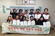 뉴한국방송뉴스통신사 신유철기자 기자 | 김해시는 진례면 화전마을이 지난 30일 ‘실버케어 상담사 전문가 과정반’ 수료식을 개최했다고 밝혔다. ‘실버케어 상담사 전문가 과정반’은 화전마을 주민이 주축이 되어 취약계층을 대상으로 전문 노인케어 상담 서비스를 제공하기 위해 상담 역량을 향상시키는 교육으로 ▲노인상담 기초, ▲노인문제와 상담, ▲미술치료 등 총 8회차로 구성하여 8월부터 추진됐으며, 교육생 10명 모두 실버케어 상담사 자격증을 취득했다. 특히 자격증을 취득한 주민들은 진례면 농촌마을의 취약계층 돌봄을 위해 화전돌보미 자체활동반으로 활동하며 주민 중심 맞춤형 돌봄 네트워크를 구축할 계획이다. 교육 수료생인 화전마을 배점남 주민은 “이번 교육을 통해 주민들과 함께 나를 알아가고, 서로 알아가는 시간을 보내면서 마음에 있는 이야기를 꺼내니 그간 쌓인 답답한 마음이 풀리는 기분이었다”라며, “이번 실버케어 상담사 교육을 통해 배운 기술을 바탕으로 돌봄 활동을 진행하여 우리 주민들이 요양원에 가지 않고 집에서 건강한 노후를 보낼 수 있도록 열심히 참여하겠다”고 말했다. 한편, 진례면 화전마을은 3