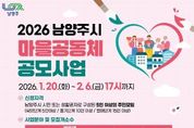 뉴한국방송뉴스통신사 신유철기자 기자 | 남양주시는 1월 20일부터 2월 6일까지 ‘2026년 마을공동체 공모사업’참여 공동체를 공개 모집한다. 이번 공모는 주민의 자발적 참여와 소통을 바탕으로 지역 문제를 해결하고 공동체 문화를 확산하기 위해 마련됐다. 모집 분야는 △나눔활동 △정약용활동 △마을돌봄활동 △자율주제활동 등 4개다. 특히 ‘정약용활동’은 ‘정약용의 도시’라는 시의 정체성을 반영한 분야로, 지난해에 이어 지속 운영된다. 새롭게 신설된 ‘마을돌봄활동’은 사회적 고립 예방을 위한 이웃 간 관계 형성과 서로돌봄 활동을 지원하는 데 중점을 둔다. 사업 참여 공동체는 성장 단계에 따라 △씨앗 △줄기 △열매단계로 구분된다. 씨앗단계는 5인 이상 주민 모임이 신청할 수 있으며, 선정 시 400만 원이 지원된다. 줄기단계는 10인 이상 주민 모임으로 1회 이상 참여 경험이 있어야 하며, 600만 원을 지원한다. 열매단계는 15인 이상 주민 모임으로 2회 이상 참여 경험이 있어야 하며, 800만 원을 지원받게 된다. 신청은 1월 20일부터 2월 6일 오후 5시까지 시청 자치협력과 공동체팀 방문 또는 전자