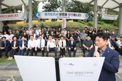 뉴한국방송뉴스통신사 신유철기자 기자 | 경기도가 산업벨트를 연결·확장하는 거점이자 ‘기회타운 3대 프로젝트’ 중 하나인 ‘4중 역세권 AI혁신의 중심 - 경기 기회타운 인덕원’ 공사를 시작했다. 경기도는 16일 안양 인덕원 환승주차장에서 김동연 경기도지사, 최대호 안양시장, 국회의원과 도·시의원, 경기주택도시공사(GH), 안양도시공사, 지역주민 등 100여 명이 참석한 가운데 ‘경기 기회타운 인덕원’ 착공식을 가졌다. 김동연 지사는 이날 착공식에서 “안양은 개인적으로 제2의 고향인데, 이곳을 뽕나무밭이 변해서 바다가 되듯이(상전벽해·桑田碧海) 완전히 변화시키겠다. 상전벽해가 되는 기적과 성과를 반드시 만들겠다”고 밝혔다. 김 지사는 이어 사업의 네 가지 비전을 소개하면서 “첫 번째는 4중 역세권 기반의 복합 환승시설 등 (기회타운을 통한)지역경제 활성화와 삶의 질 향상을 반드시 이뤄내고, 두 번째로 AI, 바이오, 모빌리티, 벤처스타트업 혁신 생태계를 이곳 기회타운을 중심으로 조성하겠다”며 “세 번째로 직주근접과 워라밸(일과 삶의 균형)이 가능한 경기도형 미래도시를 실현하고, 네 번째로 기회타운을 탄소중립을 실